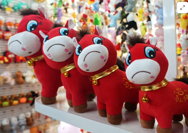 Sad face: A mistake by a Chinese manufacturer accidentally created a bestselling toy, reports Reuters. The toy, known online as Crying Horse, was born when a worker sewed the mouth on upside down, creating a frown instead of a smile. The owner of the toy company offered refunds, but instead, sales exploded ahead of the Lunar New Year and the start of the Year of the Horse. “These days, almost everyone who walks through the door asks for the Crying Horse,” said one vendor.