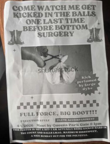 Ouch: About 120 people showed up in a park in Glasgow, Scotland, to watch a man get kicked “full force” in the testicles, reports The National. The recipient of the kick promoted the event in advance of surgery to remove his male genitalia as part of a sex change. “Come watch me get kicked in the balls one last time,” an ad read. After the event, the kickee reported: “I can feel it more in my lower chest than I can in my groin but the humour and adrenaline lift me.”